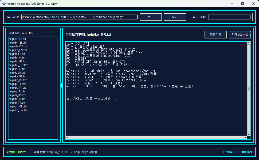 Ventoy Gui Tool menu,help 리눅스 압축파일 편집하기