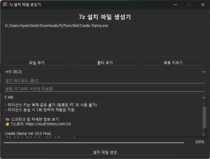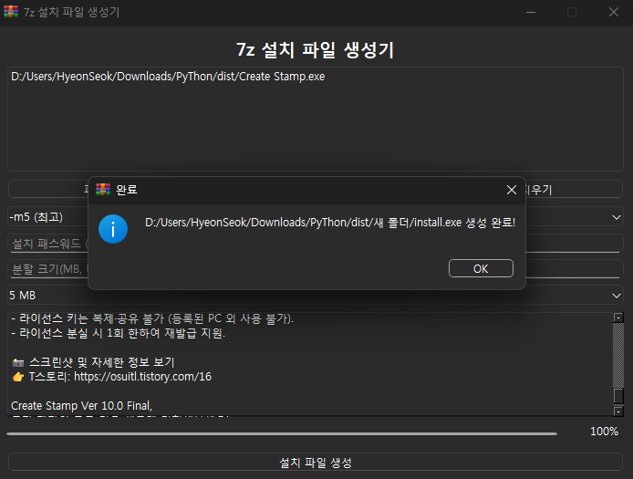 이유는 조건을 충족하면서 동시에 install.exe 를 만들기 때문에 딜레이가 생기는 이유입니다.