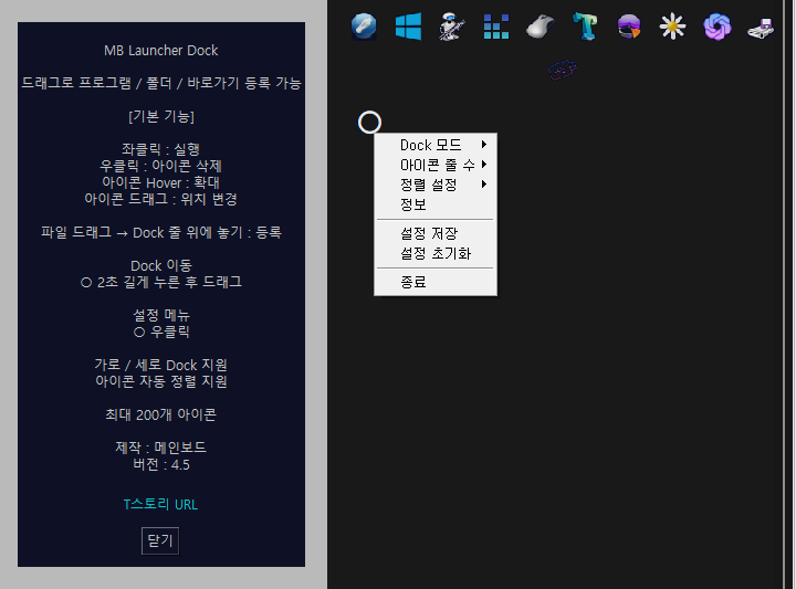 "만든이:메인보드" 좌클릭시 독 위치 이동.