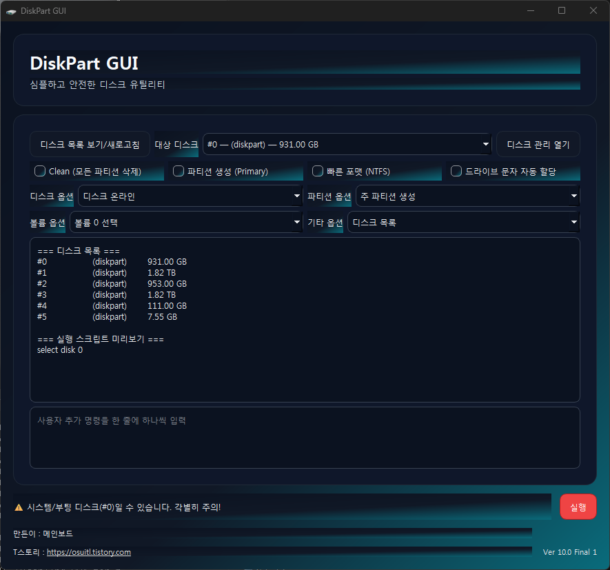 [자작] DiskPart GUI Final 1